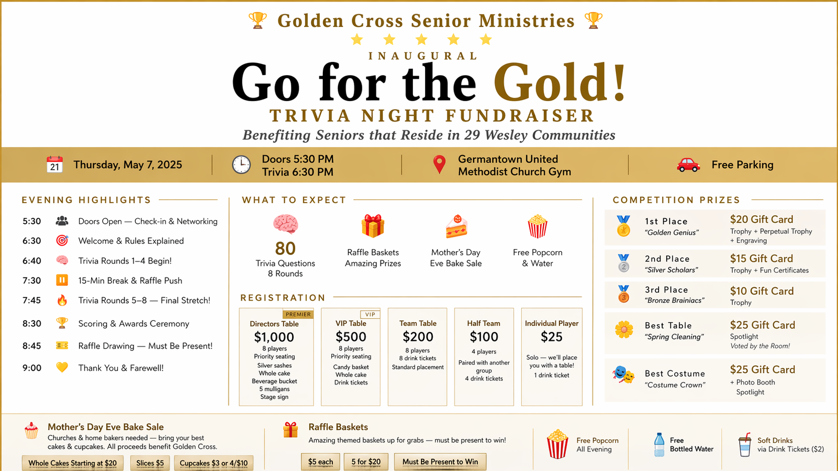 Join us for Go For The Gold Trivia Night, a fun-filled evening of knowledge, laughter, and community in support of Golden Cross Senior Ministries.