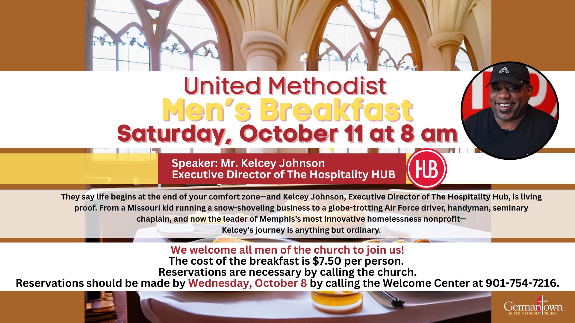 Reservations are necessary by calling the church.